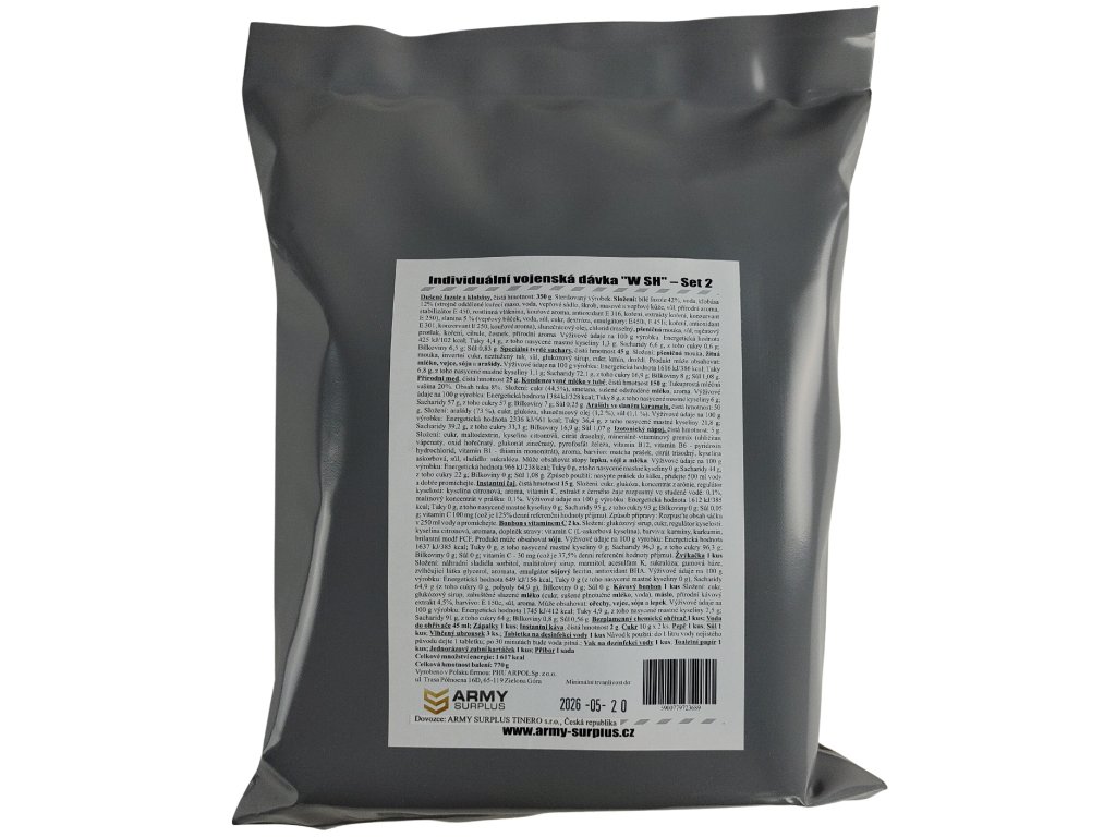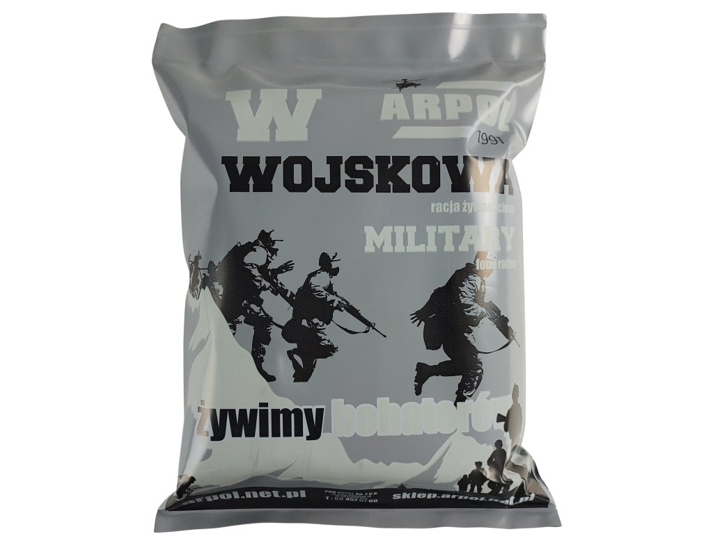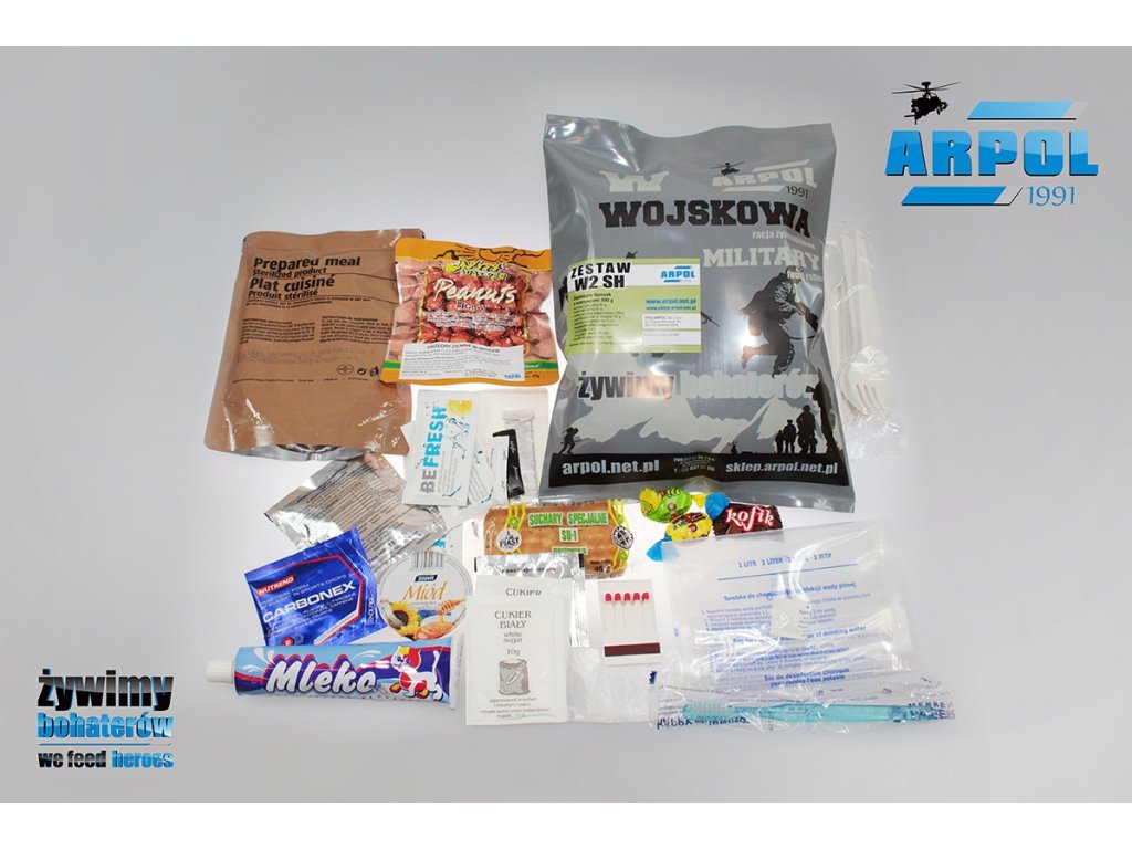 Tyto vojenské balíčky, neboli potraviny vojenských hrdinů "Wojskowa Racja żywnościowa MILITARY Food Ration żywimy bohaterów W SH" jsou vyrobeny zakázkově z prvotřídních surovin pro naší společnost renomovaným polským výrobcem ARPOL®.