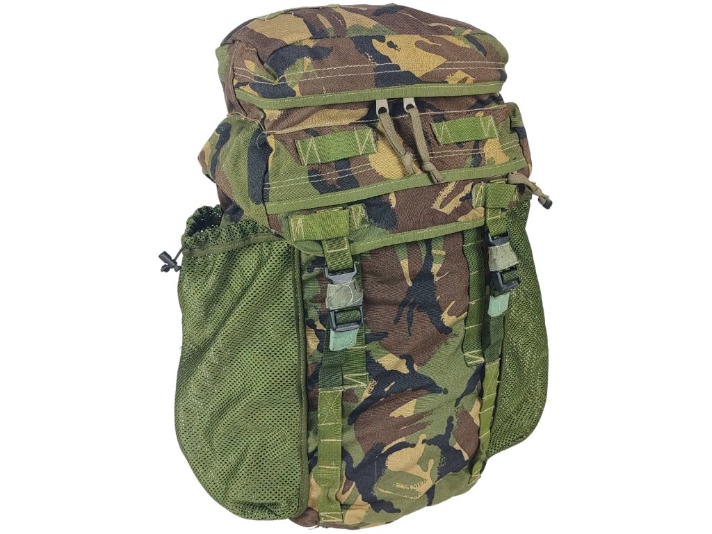 - Originální britský bojový polní batoh, individuálně upravený původním uživatelem, odlehčený o přibližně 645 g na celkové váze batohu, oproti původní verzi.