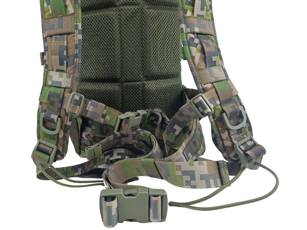 Modulární systém: Využívá všestranný univerzální upínací systém MOLLE/PALS pro uchycení další výstroje a doplňkového vybavení.