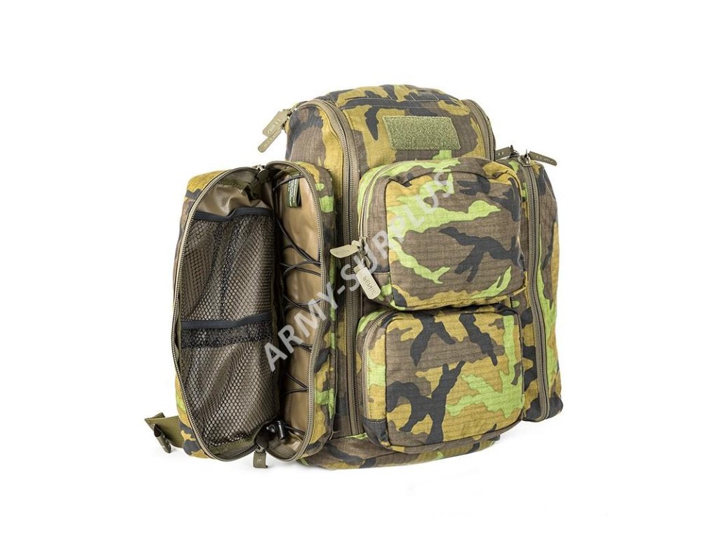 - Na celém venkovním povrchu batohu, mimo zad a dna je vypracovaná řezaná vazba MOLLE, sloužící pro variabilní přichycení přídavných kapes a dalšího materiálu.