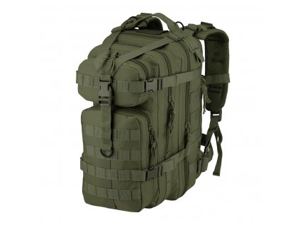 Na stranách batohu jsou čtyři kapsy. Dvě horní větší, uzavřené, nastavitelné v objemu a pokryté MOLLE vazbou a dvě menší, otevřené ty jsou umístěny níže. Na víku batohu je další velká kapsa na zip. Batoh má praktickou rukojeť pro nošení batohu.Systém je uživatelsky přívětivý, snadno se nastavuje pomocí regulátorů. Zádové dvě bodové podložky a jedna bederní podložka pokrytá distanční mřížkou zajišťují, že mezi zády a batohem proudí vzduch, takže záda se příliš nepotí. Anatomicky tvarované nosné popruhy mají D-kroužky a svislý pás, ke kterému lze připojit další vybavení. Nosný popruh je široký a pohodlný, navíc pokrytý molle vazbou. Toto je zvláště užitečné řešení, protože na něj můžeme připevnit např. nádoby na vodu nebo věci,které potřebujeme mít po ruce.
