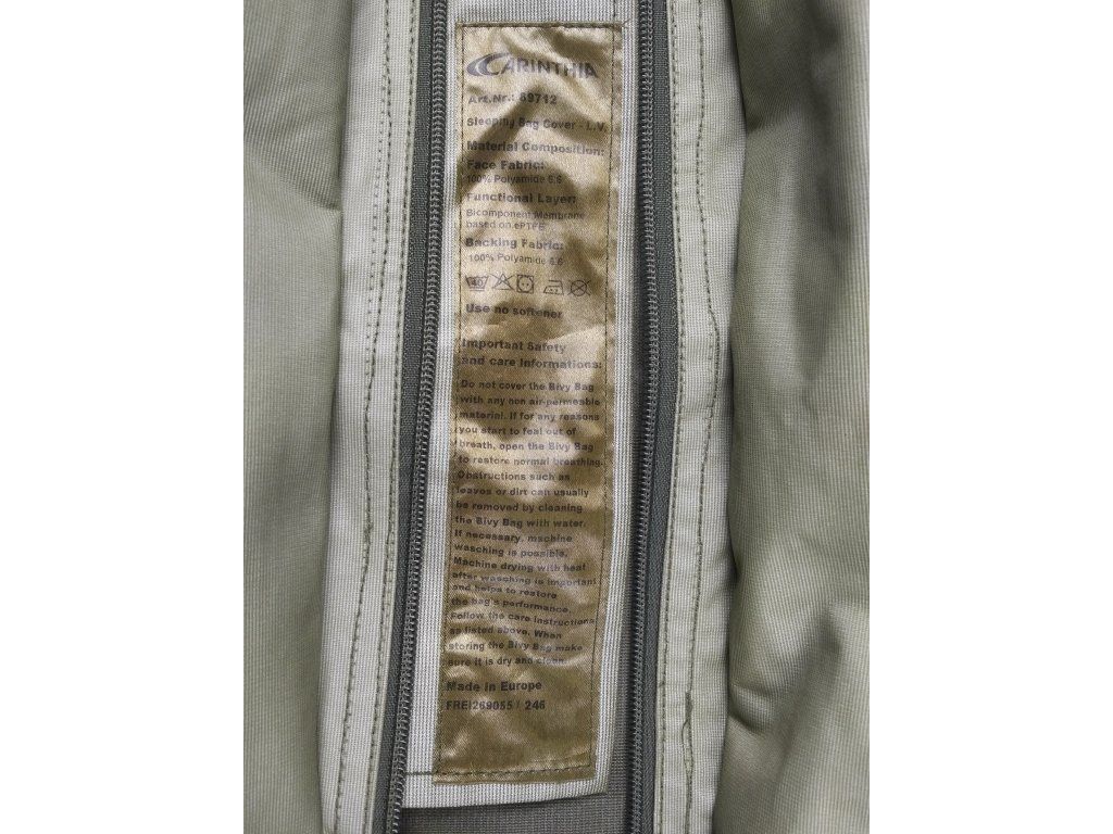 - Nepromokavý a prodyšný obal na spací pytel renomované rakouské značky Carinthia®, pocházející z výstroje pozemních sil německé armády Bundeswehr.
