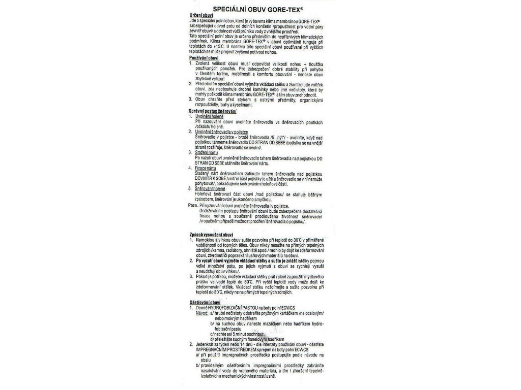 - pro delší životnost doporučujeme používat některý z přípravků k ošetření vhodný na obuv s membránou