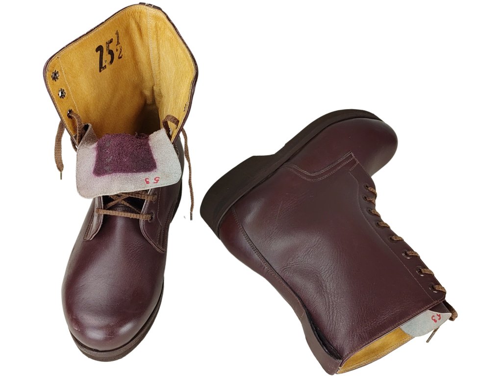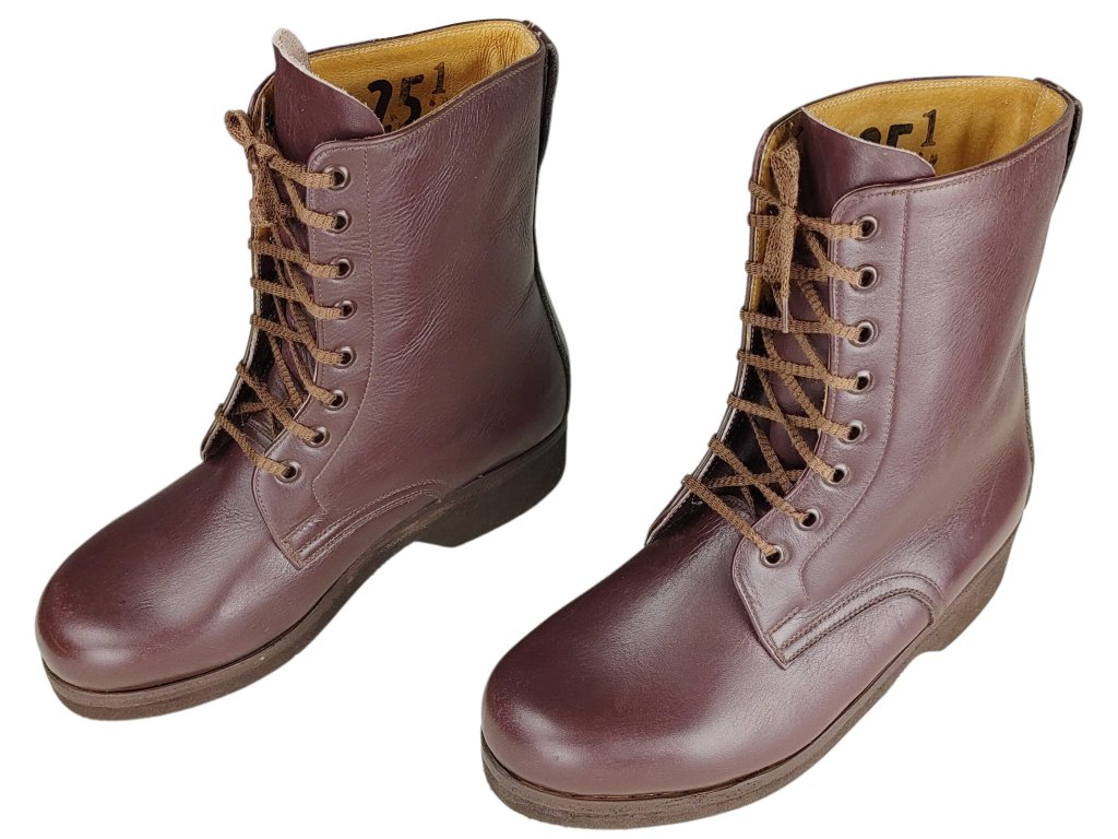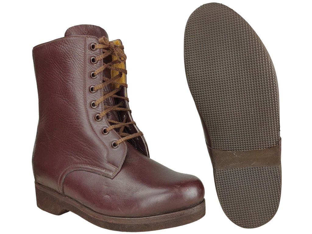 - Nepoužité zboží (boty jsou nenošené, vlivem dlouhodobého skladování mají lehké otlačeniny a vzhledové vady, v zachovalém stavu, vyřazené z armádních zásob).