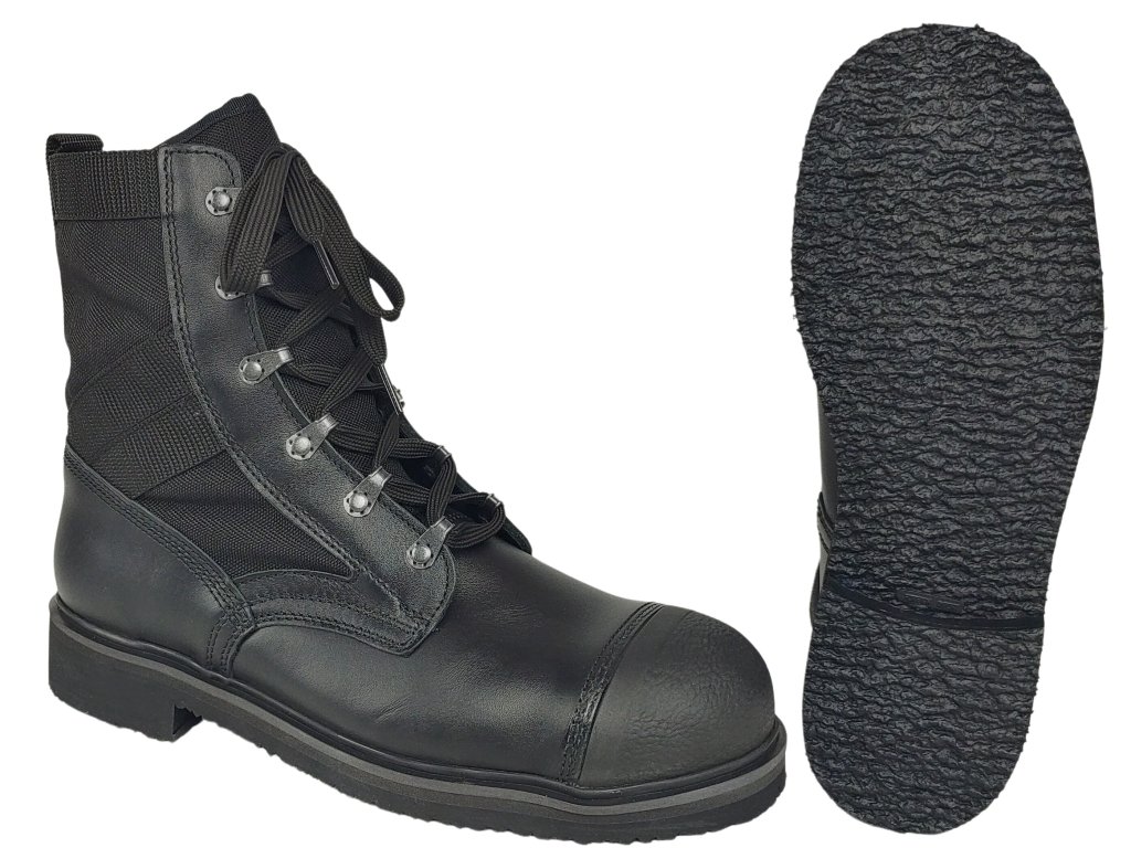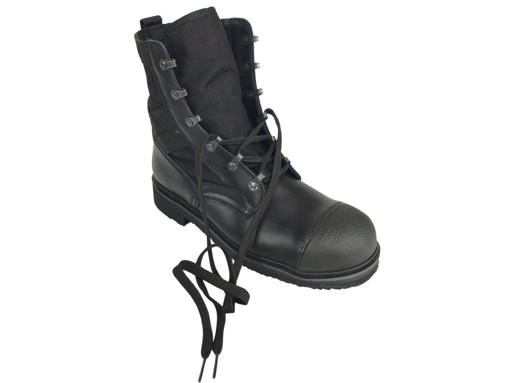 - Armádní vysoká obuv s ochrannou pryžovou špici, vhodná jako pracovní pro celoroční nošení.