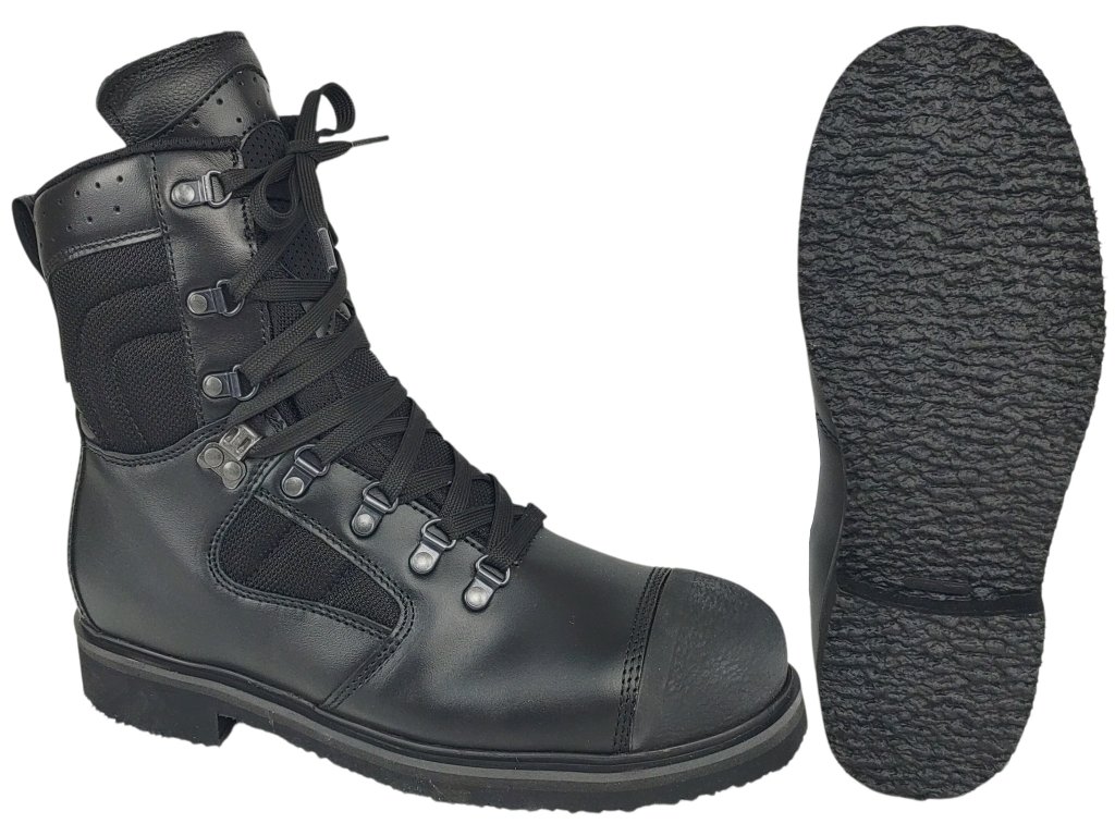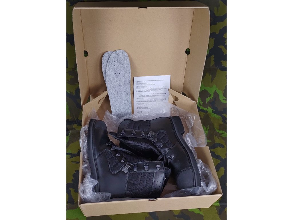 - Armádní vysoká obuv s ochrannou pryžovou špici, vhodná jako pracovní pro celoroční nošení v chladných podmínkách.