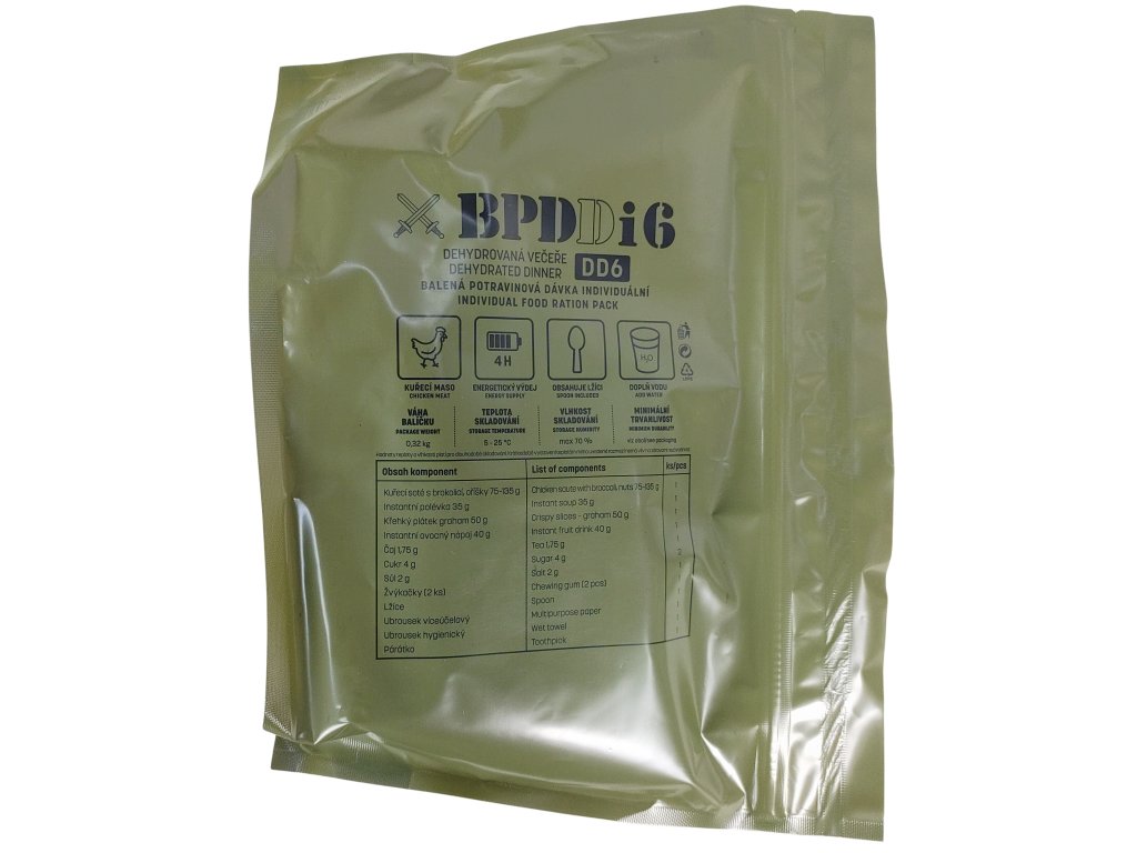 - Balená potravinová dávka dehydratovaná individuální - příděl potravy vojáka v polních podmínkách.