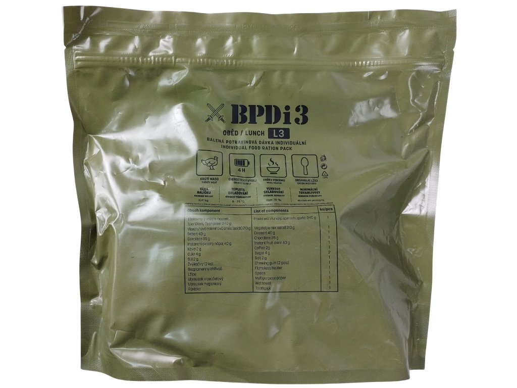 L3 (BPDi3) oběd (lunch), což je balená potravinová dávka pro jednotlivce (individual food ration pack). Jedná se o koncept vojenské potravinové dávky, který splňuje dietní potřeby Armády České republiky (AČR).