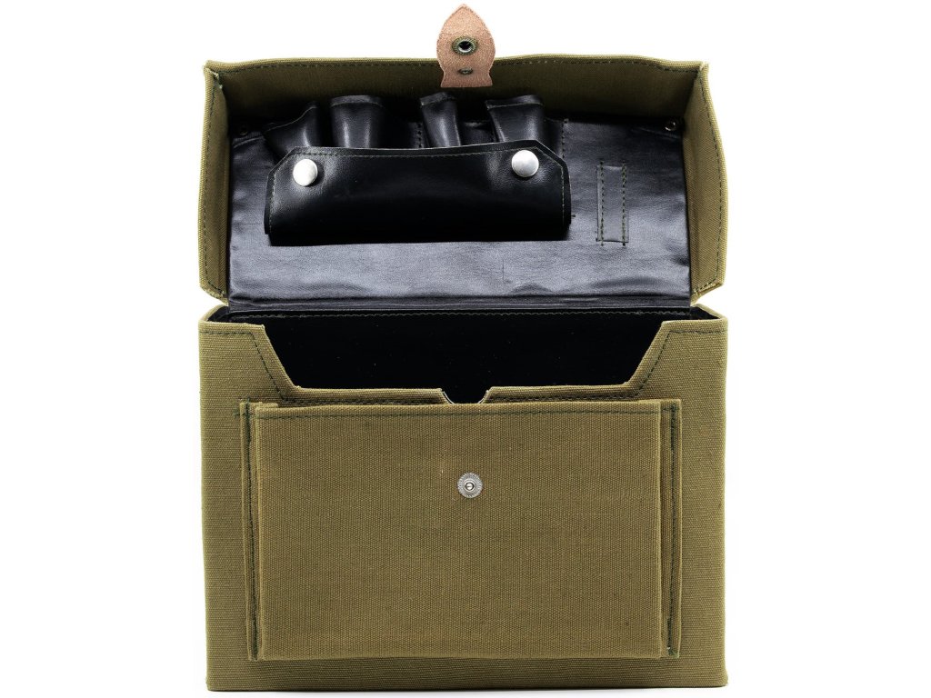 Originální brašna určená pro chemický průkazník CHP-71, používaný Československou lidovou armádou. Jedná se o autentický kus armádní výstroje, který sloužil k bezpečnému přenášení a ochraně chemického průkazníku při polním nasazení.