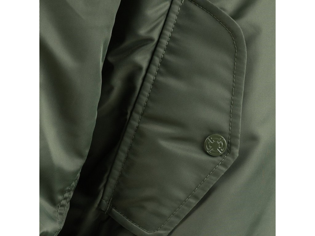 Zateplená bunda konstrukčně vycházející z legendární pilotní bundy MA1. Na její výrobu byl použit odolný nylonový svršek, doplněný o hladkou polyesterovou podšívku a bavlněný límec s nastavitelnou kapucí hutné gramáže, která jen tak neprofoukne.