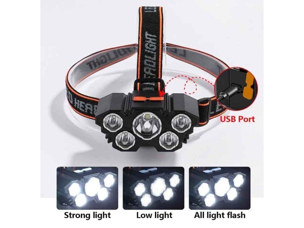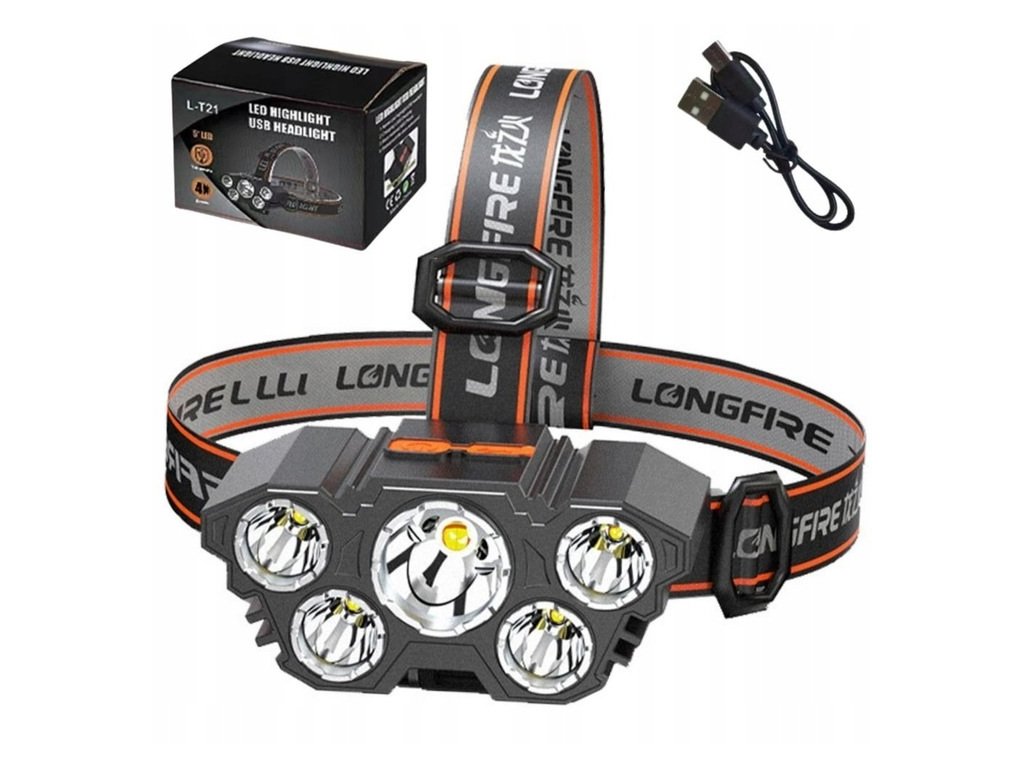 Čelová svítilna - Čelovka 5 LED T6 nabíjecí USB model L-T21
