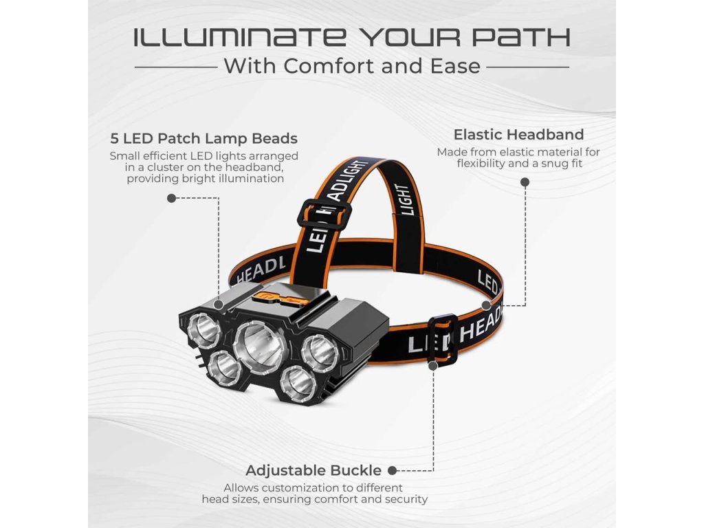 Pohodlí a použití: Má nastavitelný hlavový popruh pro pohodlné nošení a ergonomický design s nastavitelným úhlem světla pro snadné použití i při delších aktivitách.