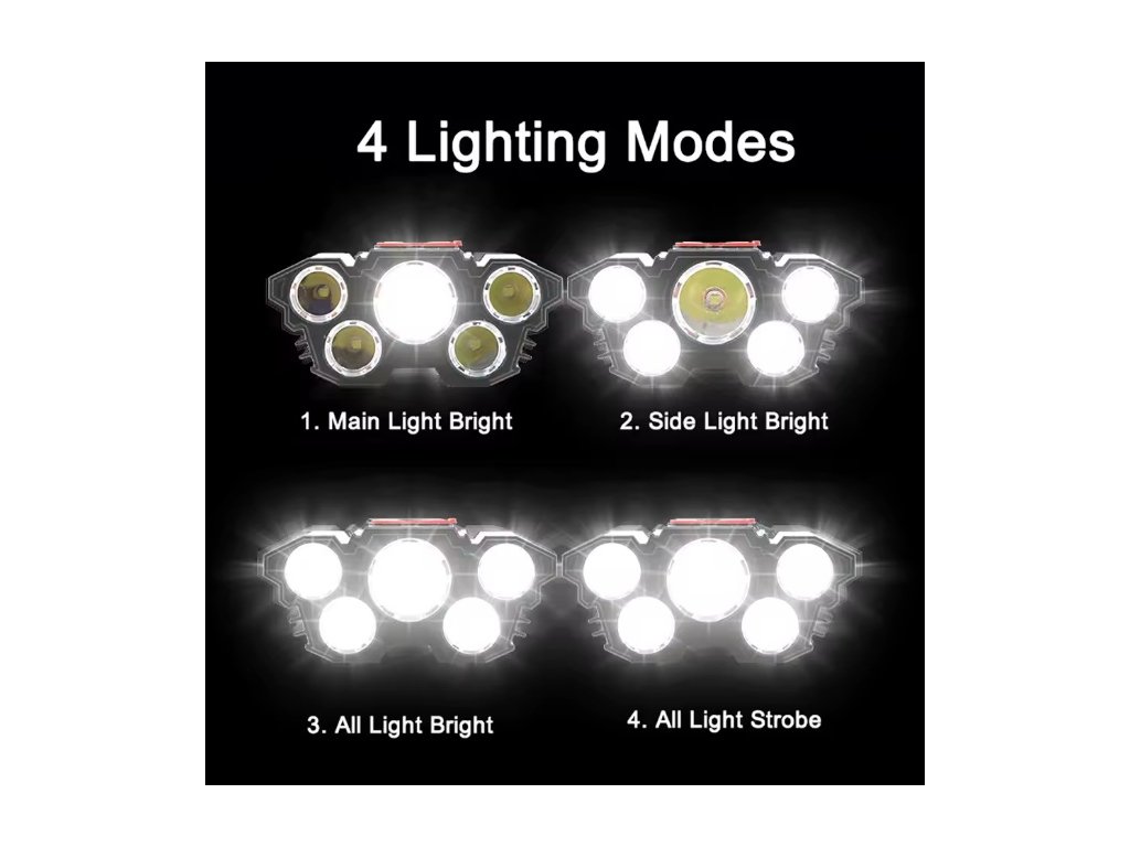 Je vybavena 5 LED diodami, včetně jedné výkonné T6 a čtyř XPE LED diod, což zaručuje jasné a intenzivní světlo s velkým dosahem, což výrazně zlepšuje viditelnost ve tmě.