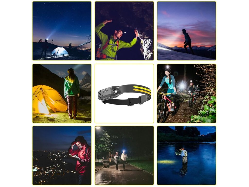Senzor pohybu:Umožňuje bezdotykové zapínání a vypínání čelovky mávnutím ruky, což je praktické například při práci v rukavicích.