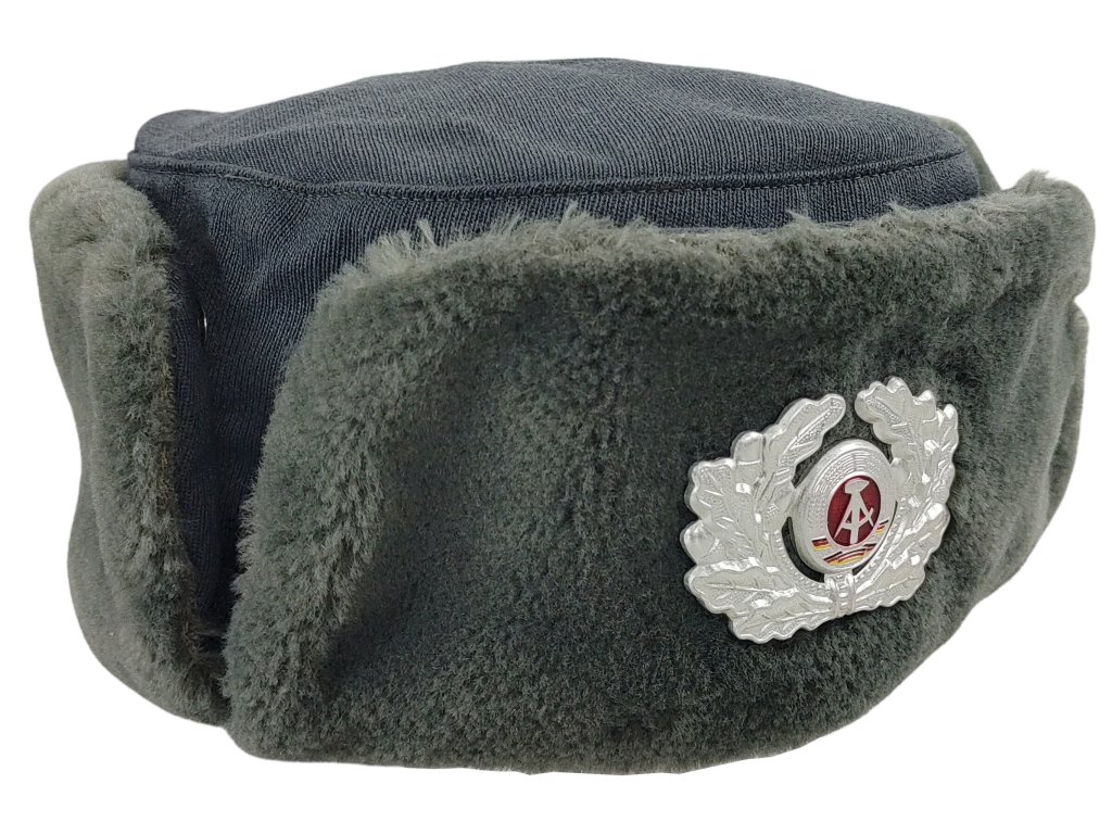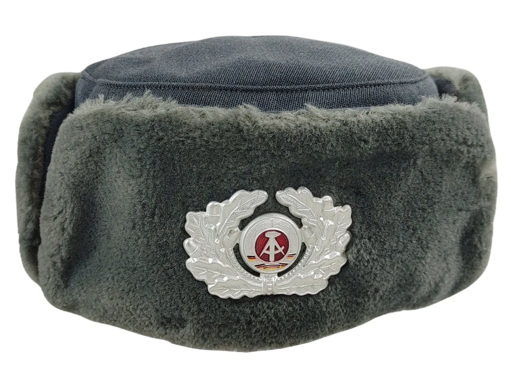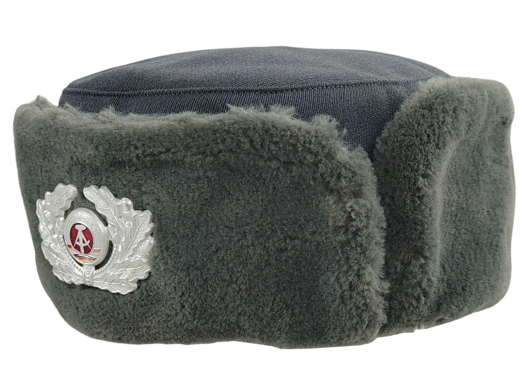 - Zimní hřejivá ušanka pro ženy, nebo také beranice pro vojenské důstojnice Východoněmecké armády.