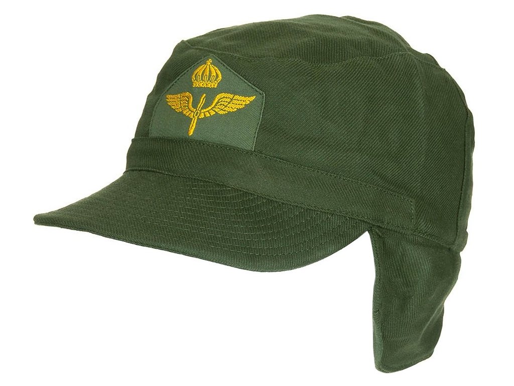 - Vojenská letecká čepice, ušanka do větrného a nepříznivého počasí, k uniformě vojáka ozbrojených vzdušných sil Královské armády Švédska.
