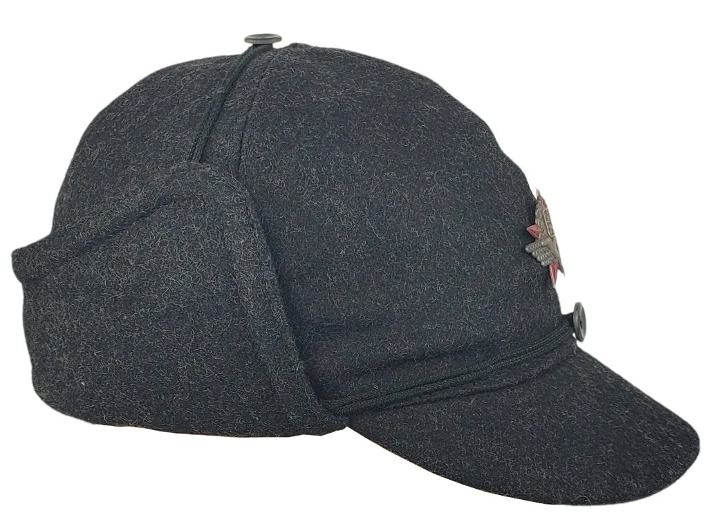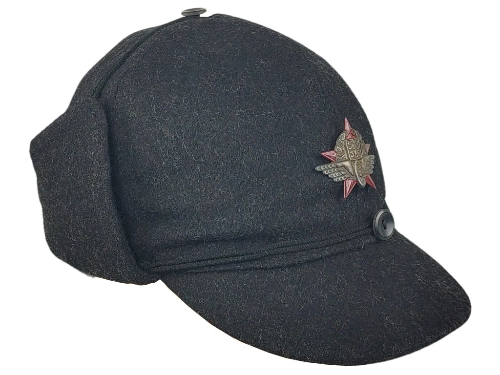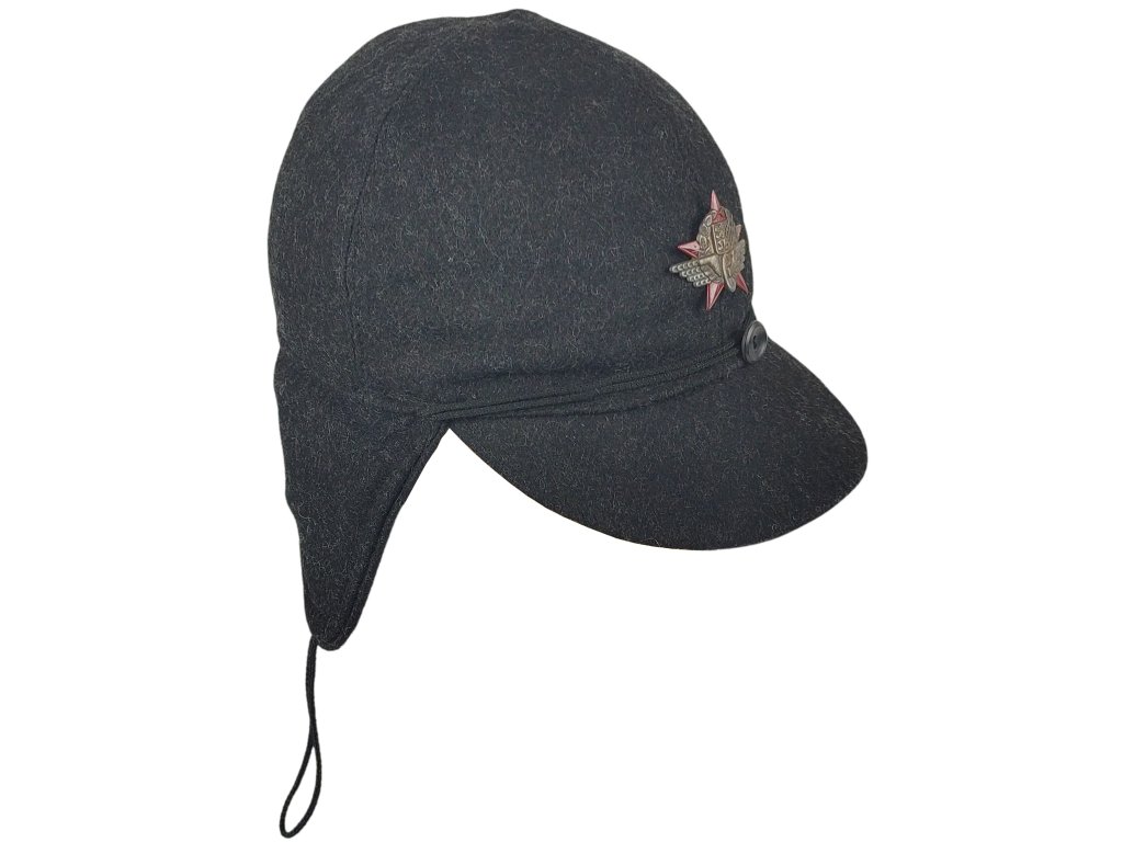 Stejnokrojová čepice pracovníků ČSD (Československé dráhy). Ušanka s klopami na uši, vyrobena z hutné vlněné tkaniny tmavě modré barvy. S vnitřní podšívkou z hladké viskózy pro vysoký komfort při nošení. Některé varianty mají na čelní straně čepicový odznak ve tmavém nebo světlém provedení s červeným smaltem.