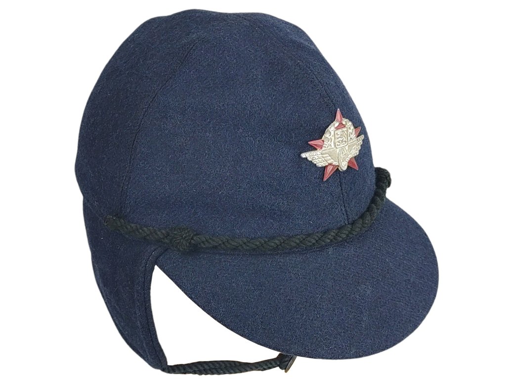 Stejnokrojová čepice pracovníků ČSD (Československé dráhy). Ušanka s klopami na uši, vyrobena z hutné vlněné tkaniny tmavě modré barvy. S vnitřní podšívkou z hladké viskózy pro vysoký komfort při nošení. Některé varianty mají na čelní straně čepicový odznak ve tmavém nebo světlém provedení s červeným smaltem.