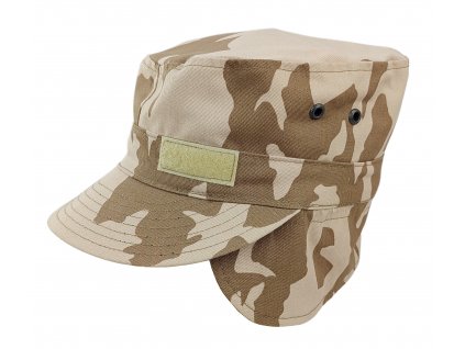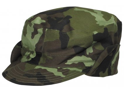 - Přehýbací chrániče uší a týlu (dají se přehnout z vnější strany čepice), chrániče uší lze pod bradou sepnout dvěma zdobenými knoflíky.
