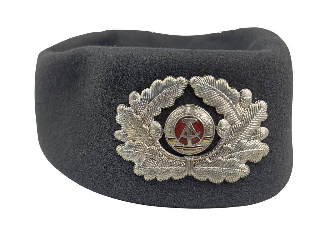 Originální dámská důstojnická čepice používaná v rámci pozemních sil NVA (Nationale Volksarmee) v bývalé Německé demokratické republice (DDR) v období 70. až 80. let.