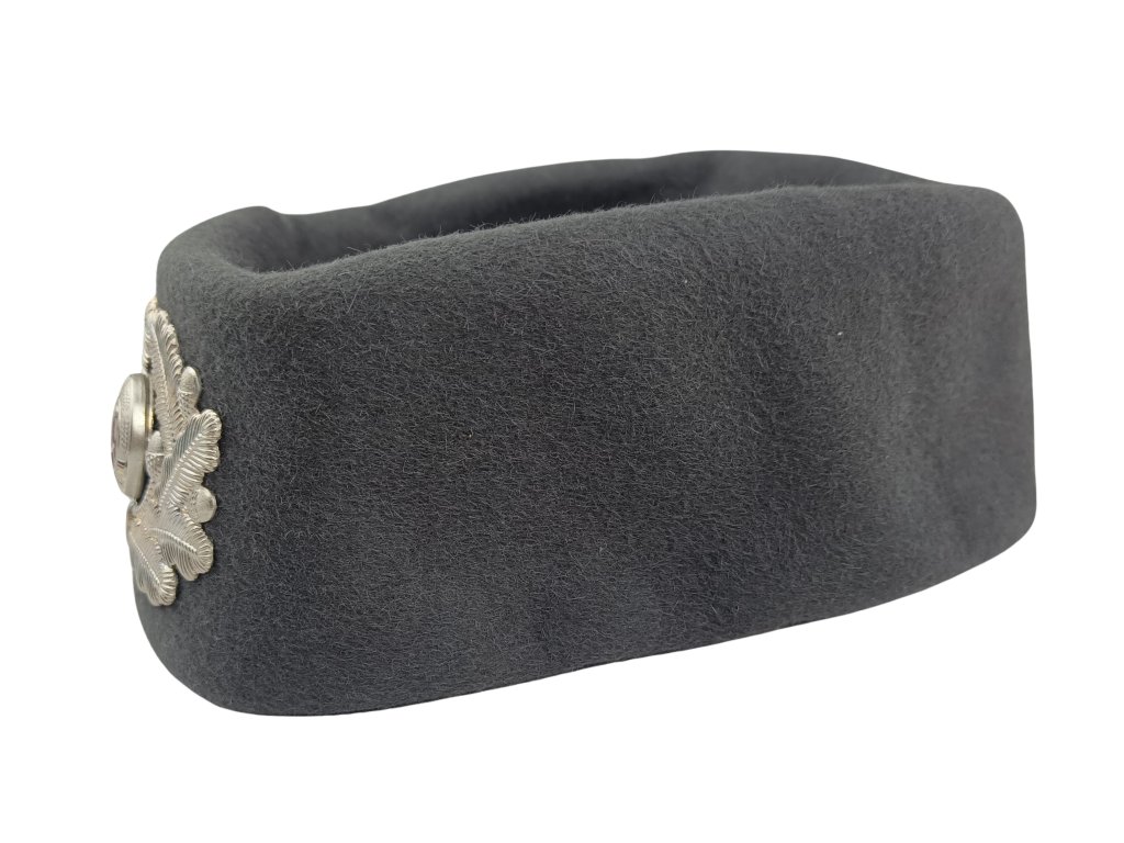 Autentický historický doplněk výstroje, ideální pro sběratele, reenactory, filmové rekvizity nebo tematické výstavy. Čepice má klasický šedý odstín typický pro pozemní složky NVA a znak DDR vpředu. Dámský tvar, určený pro důstojnický personál.