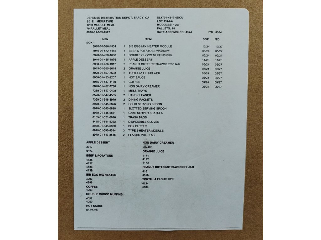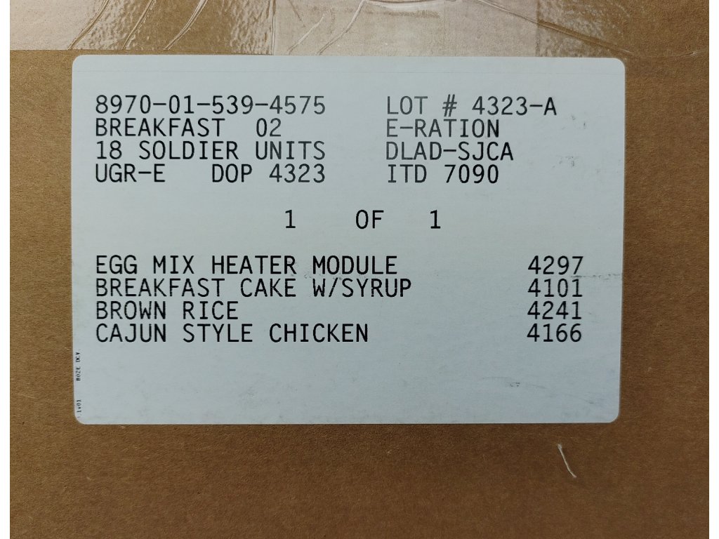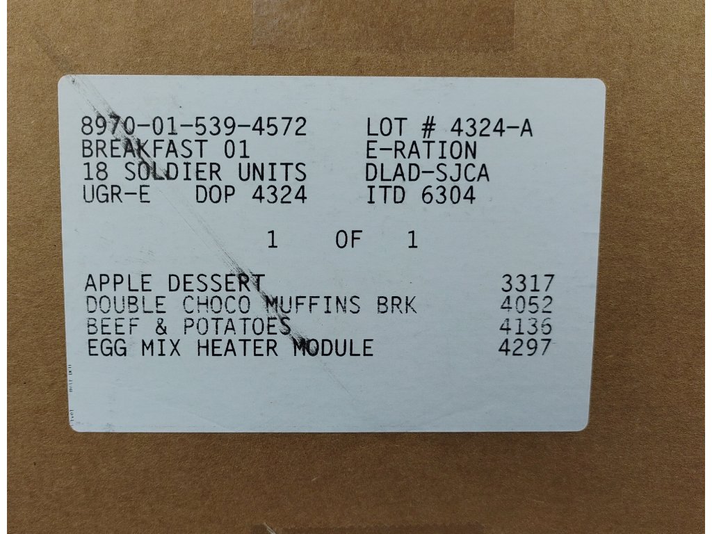 - EGG MIX HEATER MODULE #4297 / NSN: 8970-01-596-4504 (Míchaná vejce, lyofilizované/dehydratované)
