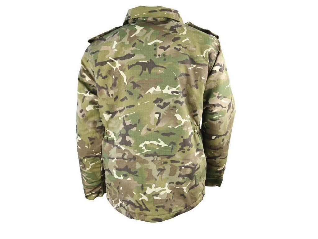 Design a materiál:Bunda je vyvedena v maskovacím vzoru (DPM nebo BTP) a je vyrobena z odolné RipStop polybavlny (65 % polyester, 35 % bavlna), s bavlněnou vnitřní podšívkou a polyesterovou výplní pro teplo.
