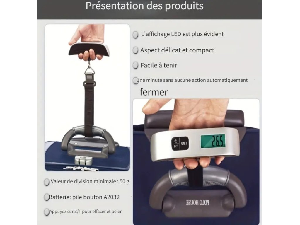 Tato elegantní přenosná digitální váha na zavazadla zajistí, že vaše zavazadla nepřekročí určitý hmotnostní limit. Je navržena pro kontrolu zavazadel na letišti a umožňuje vám cestovat bez zátěže!