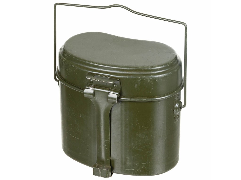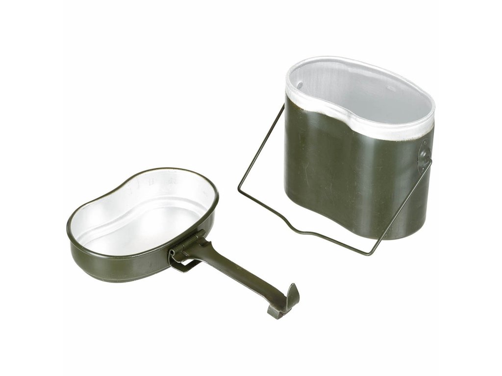 - Rumunský vojenský dvoudílný hliníkový ešus se sklopným úchytem k zavěšení.