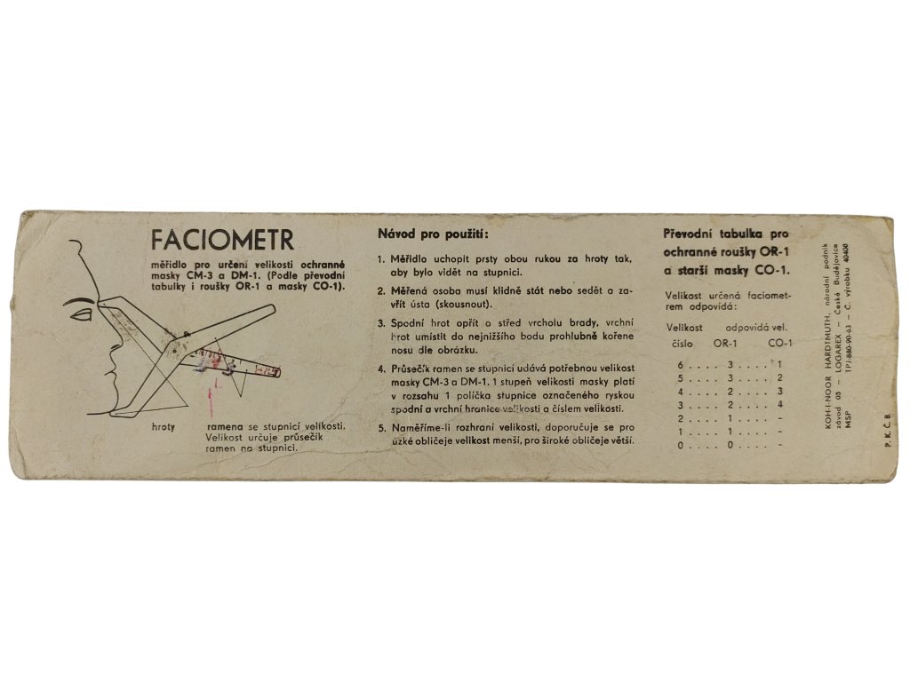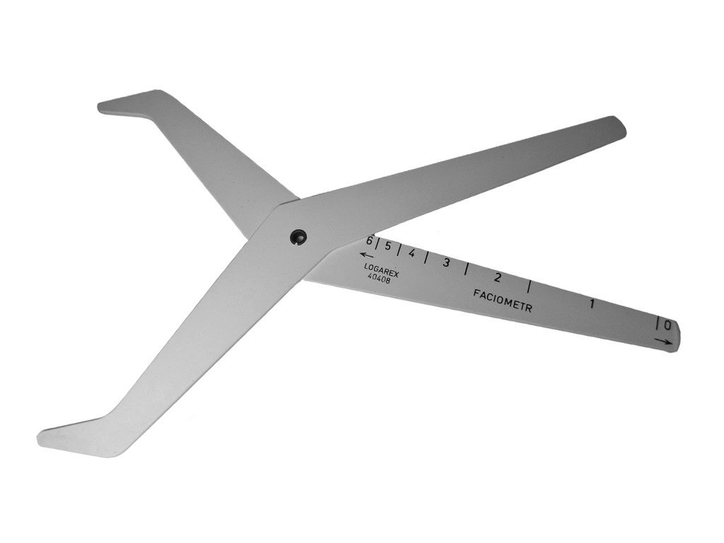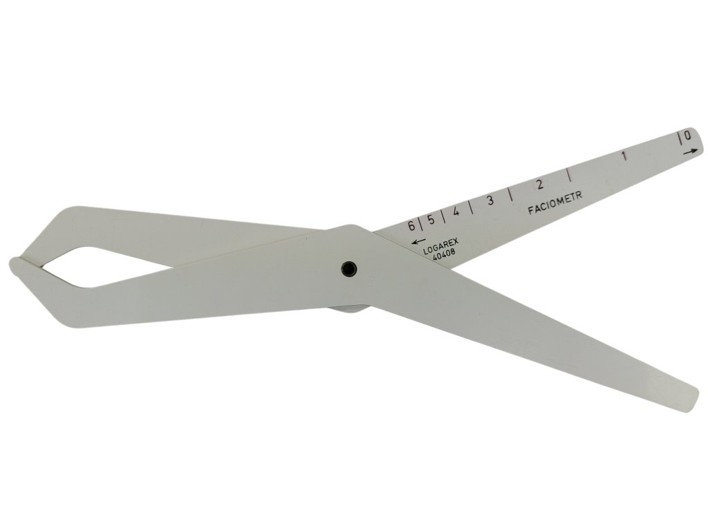 Tento faciometr značky Logarex byl používán u československé armády a civilní obrany, a sloužil k výběru správné velikosti masek pro jednotlivé uživatele na základě měření čelisti, nosu a výšky obličeje.