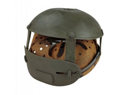 - Výsadkářská ocelová přilba s přídavnou, odnímatelnou síťkou k individuální kamufláži.