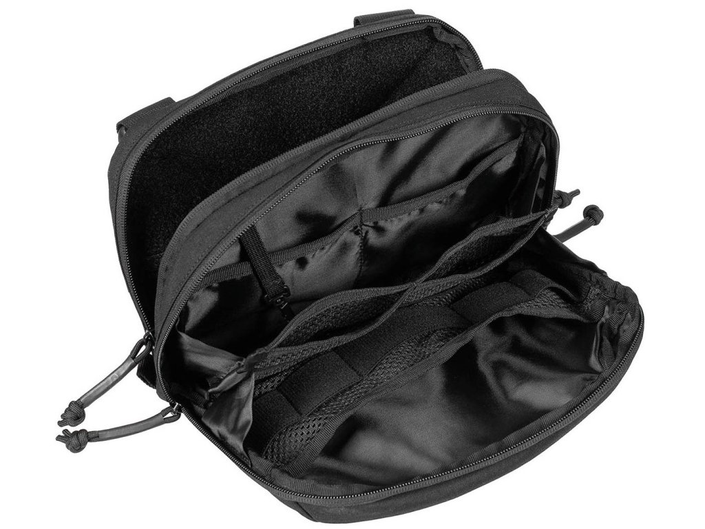 - Přední strana s kapsou na zip a zasouvací kapsou se suchým zipem a poutky MOLLE na vnější straně.