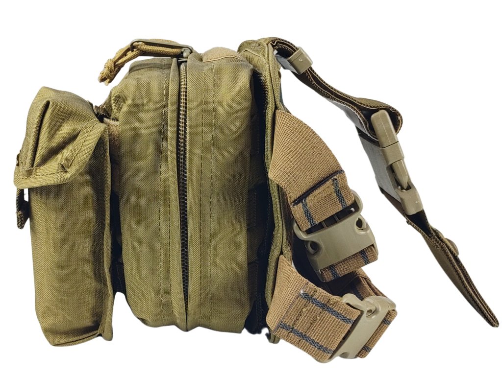 - Brašna IFAK se zapínáním na dvoucestný samoopravný zip odolný vůči písku a vodě s tichým tahem šňůr 550 Paracord.