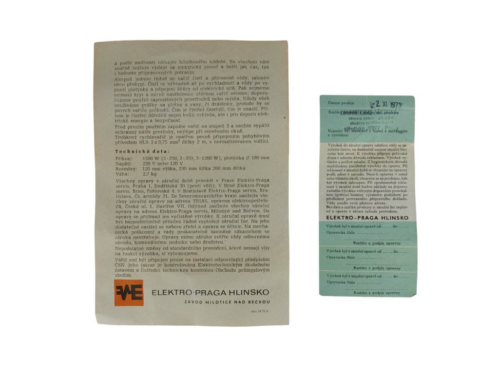 Výrobce: ETA / ELEKTRO PRAGA HLINSKO ZÁVOD MILOVICE NAD BEČVOU