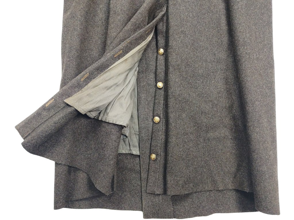 Důstojnický kabát nižšího plukovníka letectva Sovětské armády, vyrobený z poctivé a hutné 100% vlny tmavě šedé barvy. Dvouřadé zapínání na zlatavé knoflíky, které jsou typicky zdobené pěticípou hvězdou s kladivem a srpem.