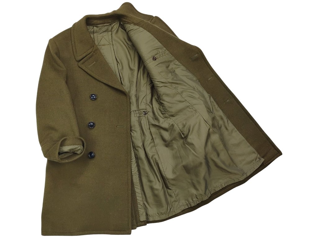 Originální vlněný kabát z polské vojenské emise s tříčtvrteční délkou tzv. "paleto".
