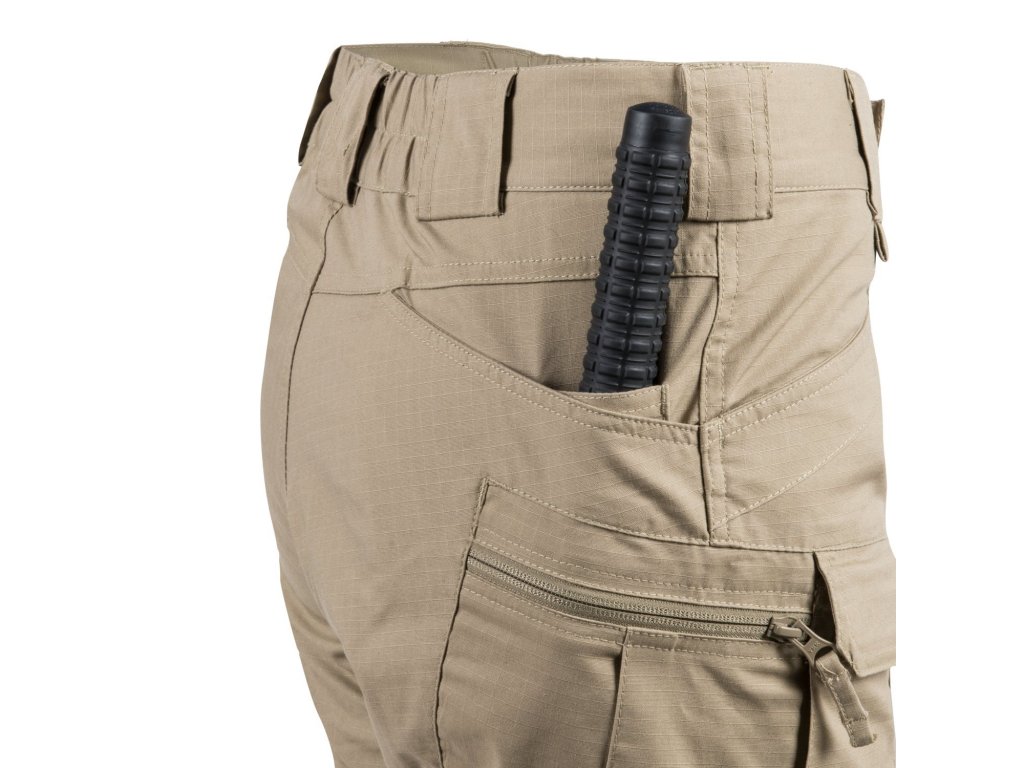 Dámské kalhoty WOMENS UTP Resized® (Urban Tactical Pants®) polské renomované taktické společnosti Helikon-Tex®, jsou pokročilé taktické kalhoty pro ženy, určené pro střelecké nadšence, milovníky outdooru a každodenní uživatele. Tyto dámské taktické kalhoty jsou vyrobeny tak, abyste mohli pohodlně nosit základní vybavení, jsou nenápadné a umožňují diskrétnost při provozu v městském prostředí. Každá z 12 kapes byla navržena pro uložení zásobníků, zavíracího nože, malé lékárničky nebo multifunkčního nářadí, což uživateli ponechává plnou svobodu při organizování vybavení. Promyšlená konstrukce znamená, že nesená výbava bude blízko těžiště těla a umožní pohodlný pohyb po mnoho hodin. Díky speciálně navrženým kapsám na kolenou mohou kalhoty WOMENS UTP Resized® pojmout měkké chrániče (Low Profile Protective Pads), které zvyšují bezpečnost uživatele při práci v různorodém a nejistém terénu. Široká poutka na opasek, umožňující použití opasku o šířce až 50 mm, umožňují spárovat tyto kalhoty s většinou taktických a pracovních opasků dostupných na trhu. Změna velikosti v názvu produktu znamená, že jeho velikost byla změněna oproti základnímu produktu, v tomto případě WOMENS UTP® (URBAN TACTICAL PANTS®). Při výběru velikosti doporučujeme být obzvláště opatrní.