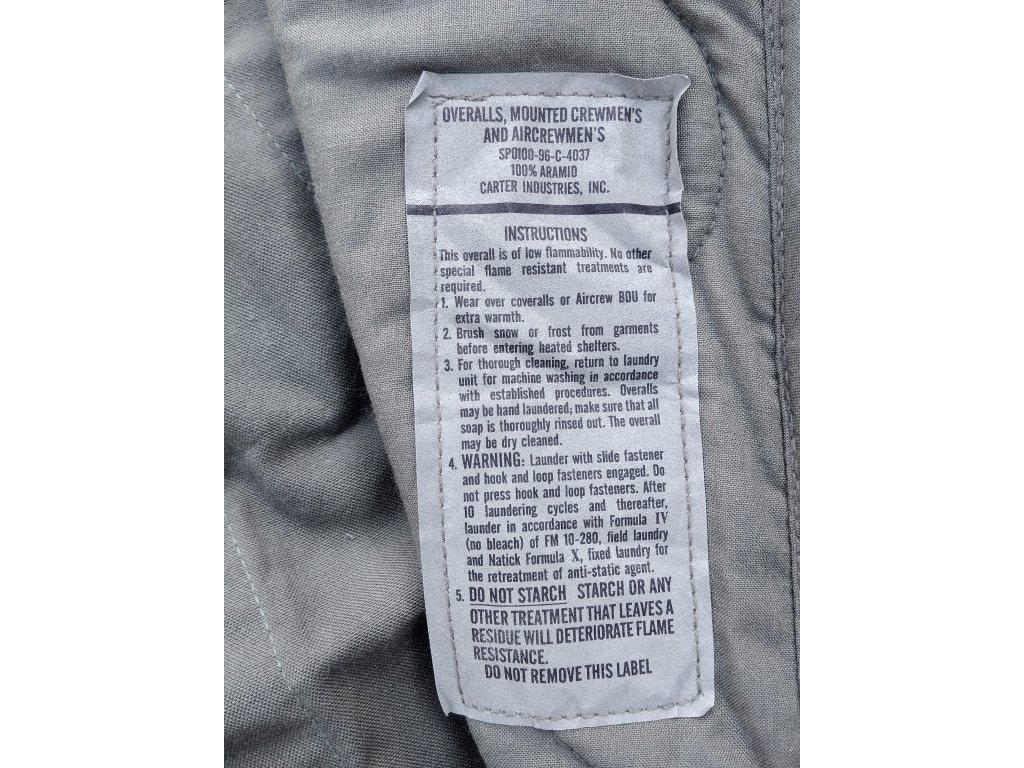 Kalhoty zimní Aramid pro piloty US Air Force a posádky bojových vozidel originál
