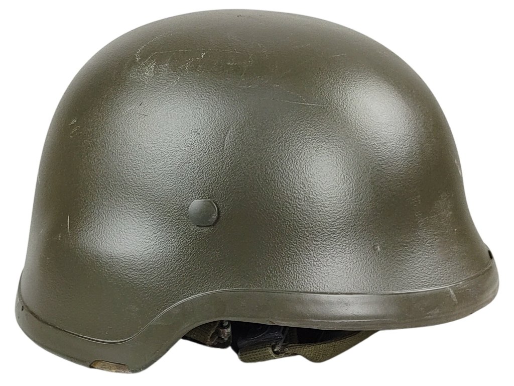 Kevlarová helma pozemních sil německého Bundeswehru. Neprůstřelná přilba, která byla používaná v armádě k ochraně hlavy vojáka před střelami a střepinami. Vyřazené helmy v použitém, ale poměrně zachovalém stavu, bez garance balistické ochrany.