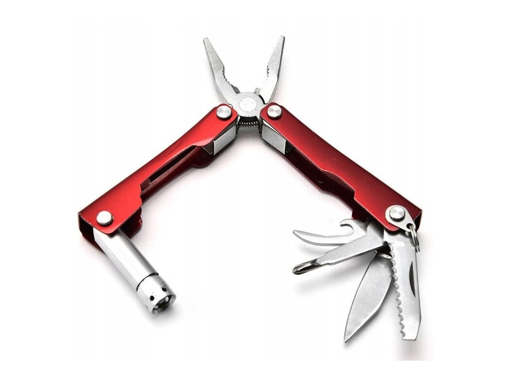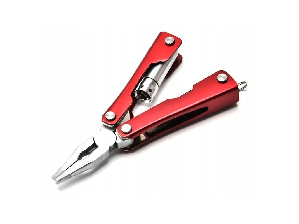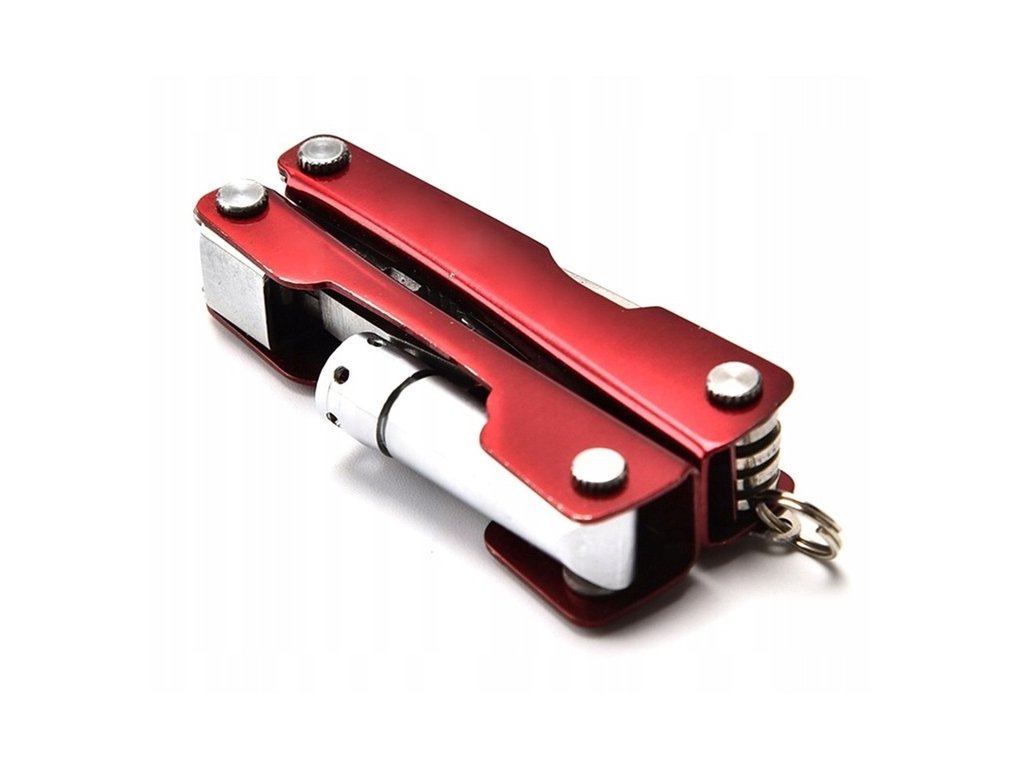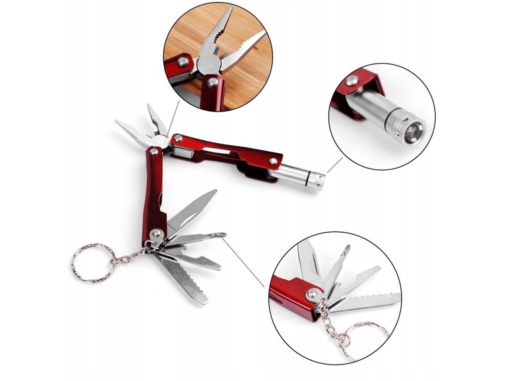 Klíčenka multifunkční nástroj Multitool kleště s baterkou s kroužkem na klíče a pouzdrem.