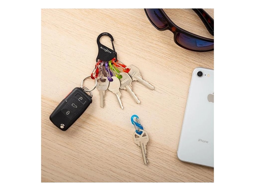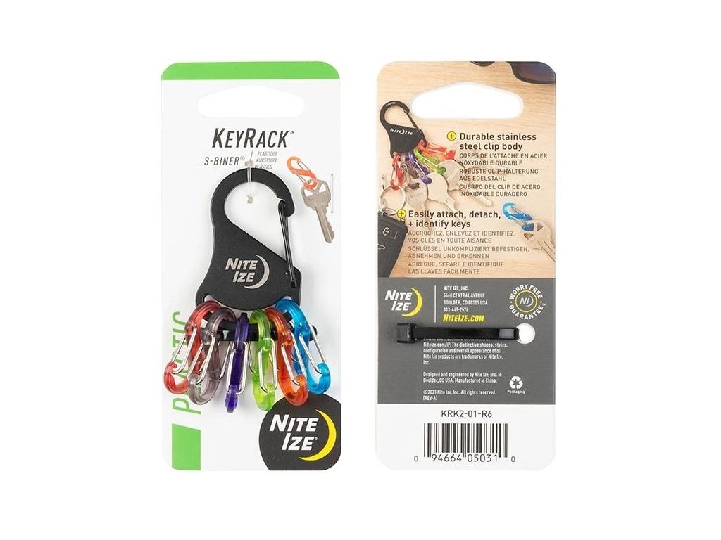 - 6 různě barevných plastových karabin S-biner velikosti #0 kombinuje inovaci a univerzálnost S-Bineru a poskytuje jedinečnou funkčnost a přístup ke klíčům.