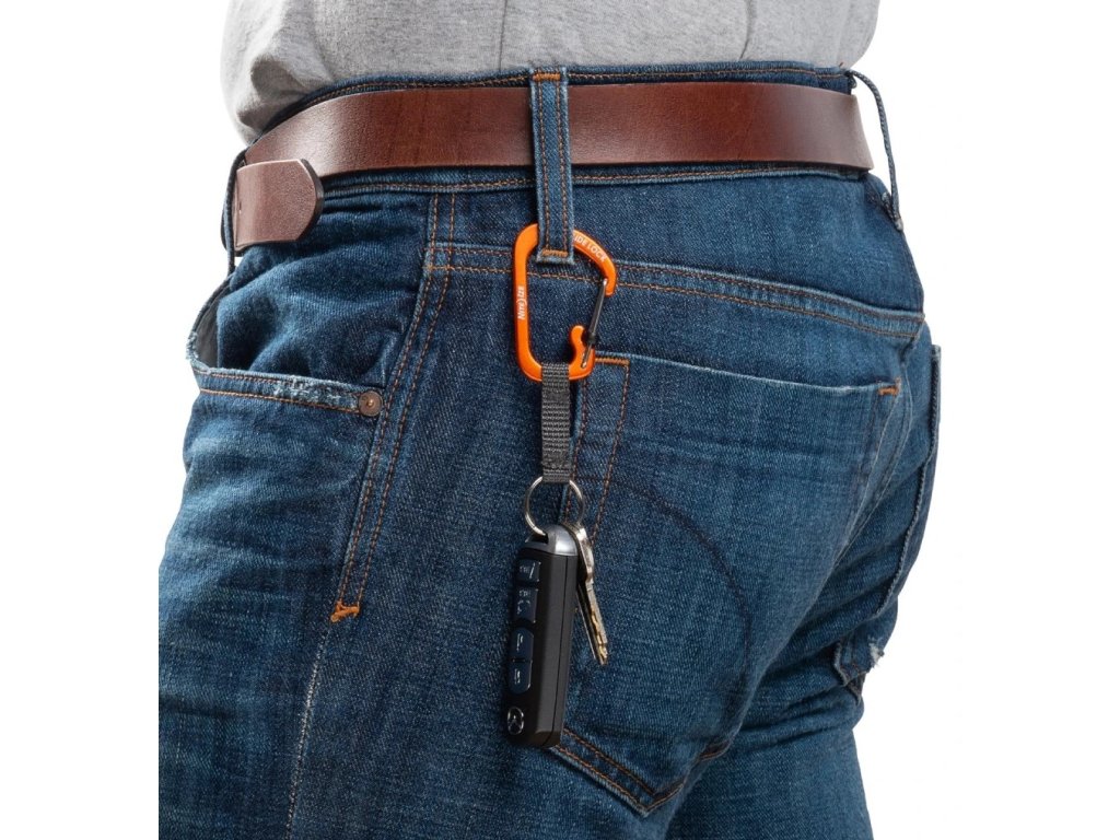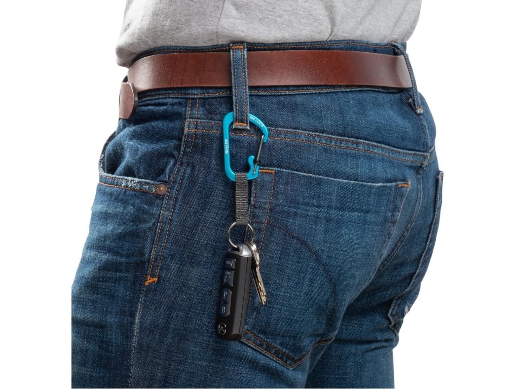 - Odolná hliníková uzamykatelná karabina s kombinací kroužku na klíče.
