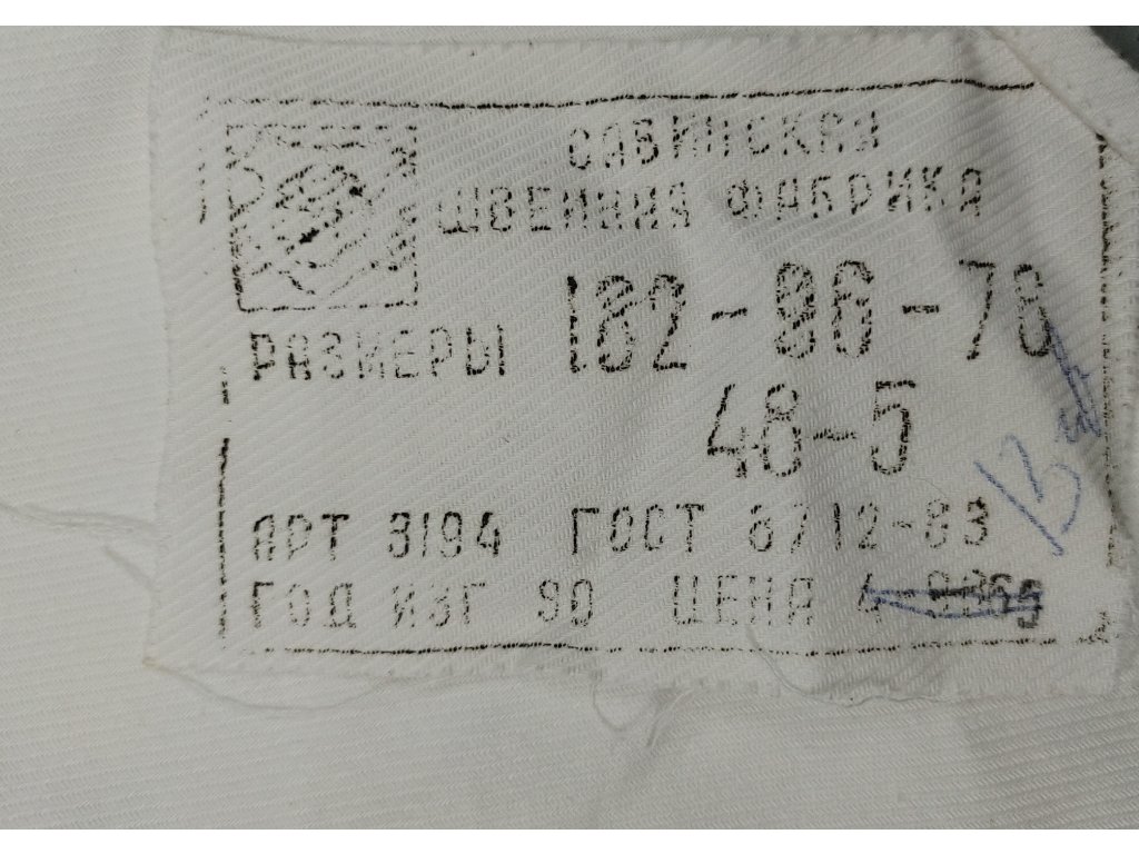 - Vyrobeno v Sovětském svazu v průběhu 80. - 90. let 20.století z vysoce kvalitní bavlněné tkaniny, materiál je velice pevný a příjemný na dotek.