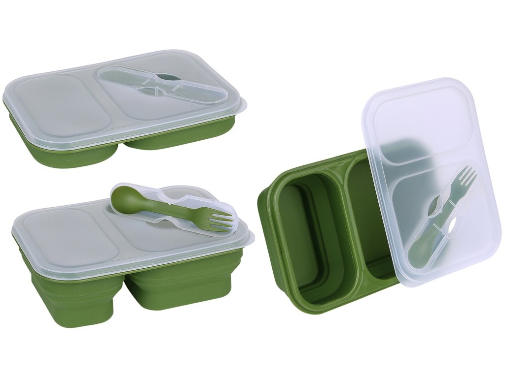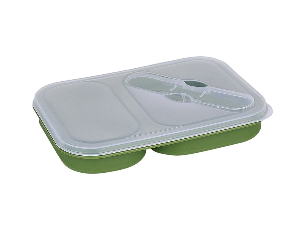 - Collapsible Silicone Lunchbox (Lunch Box) with Cutlery, Green.