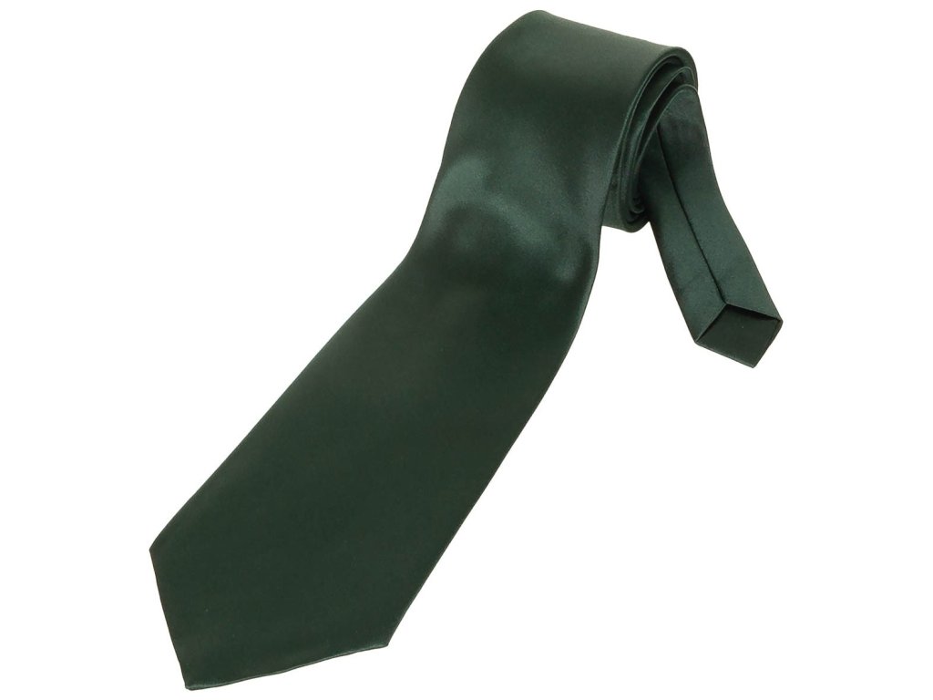 - Tmavě zelená kravata se saténovým leskem standardního business střihu.