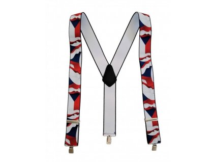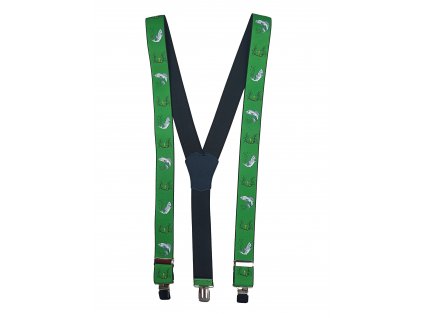 Kvalitní a pohodlné kšandy (šle) ve vzoru "Y", opatřené barevným potiskem.