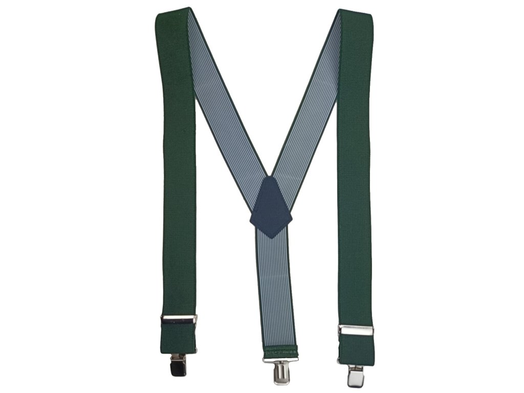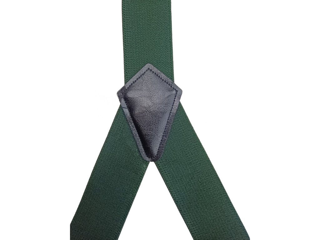 - Kvalitní a pohodlné kšandy - elastické šle ve vzoru "Y" ("ypsilonky") láhvově zelené barvy.