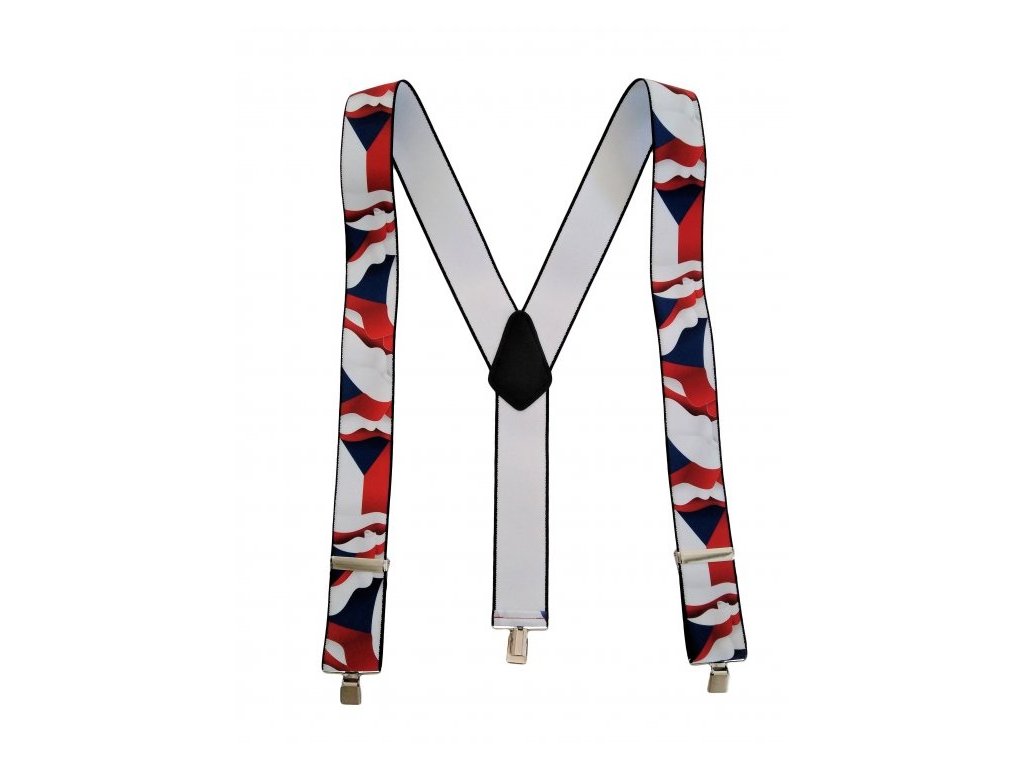 - Kvalitní a pohodlné kšandy - elastické šle ve vzoru "Y" ("ypsilonky") s potiskem českých vlajek.