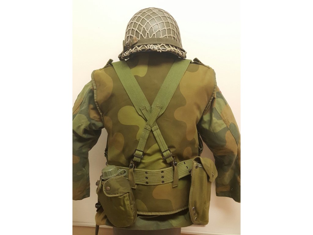 Originální vojenské kšandy norské armády. Vyrobené z odolného plátna, inspirované americkým modelem M1936. Tyto kšandy se vyráběli v průběhu 80. - 90. let 20. století, a byli nošeny spolu s uniformou M1975. Uchycení pomocí šesti kovových spon, klasických háčků, které lze uchytit k širokému opasku s očky nebo k poutkům u polních kalhot.