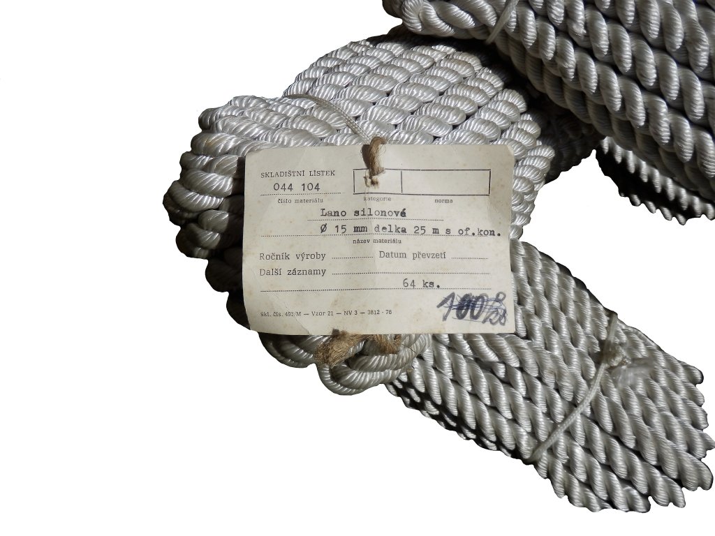 - Nepoužité zboží (lana nesou stopy dlouhodobého skladování, povrchově znečištěné a zaprášené, bez poškození, vyřazené ze skladu CO -Civilní obrany)